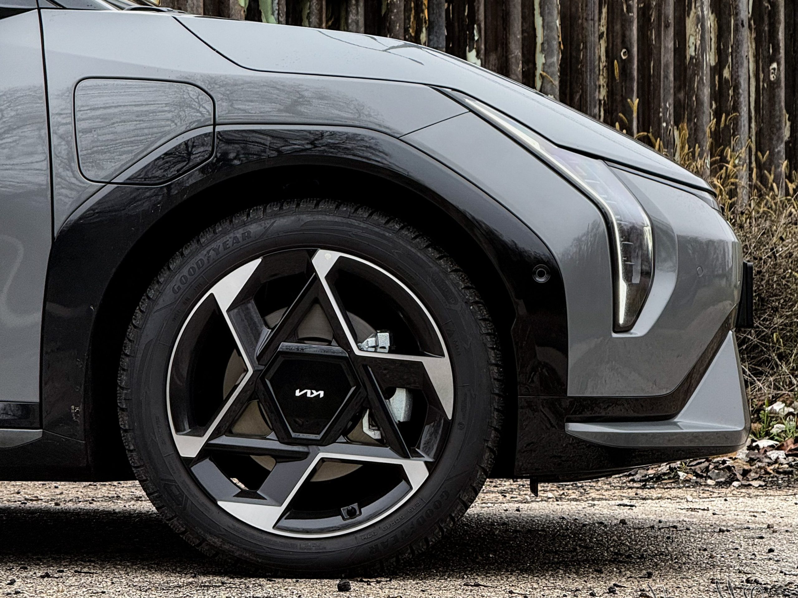 Az EV4 engem több ponton is meglepett. A futóműve egészen komfortos, lágyabb, kellemesebb, mint a Kia EV6-osé. Utóbbi kissé sprőd, feszes futóművel bír, míg az EV4 ügyesebben mozog a rosszabb városi, vagy országúti viszonyok között is. Ez nagy valószínűséggel abból is ered, hogy alacsonyabb építésű, mint az EV6, így lehetett kissé lágyabb futóművet tenni alá. Ennek a böjtje a kanyarodásnál jelentkezi, az EV6 érezhetően dinamikusabban, stabilabban fordul, bár ott a hátsókerék-hajtás is sokat tesz ehhez hozzá az EV4 front-hajtásával ellentétben.